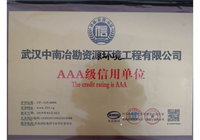 AAA级信用等级证书