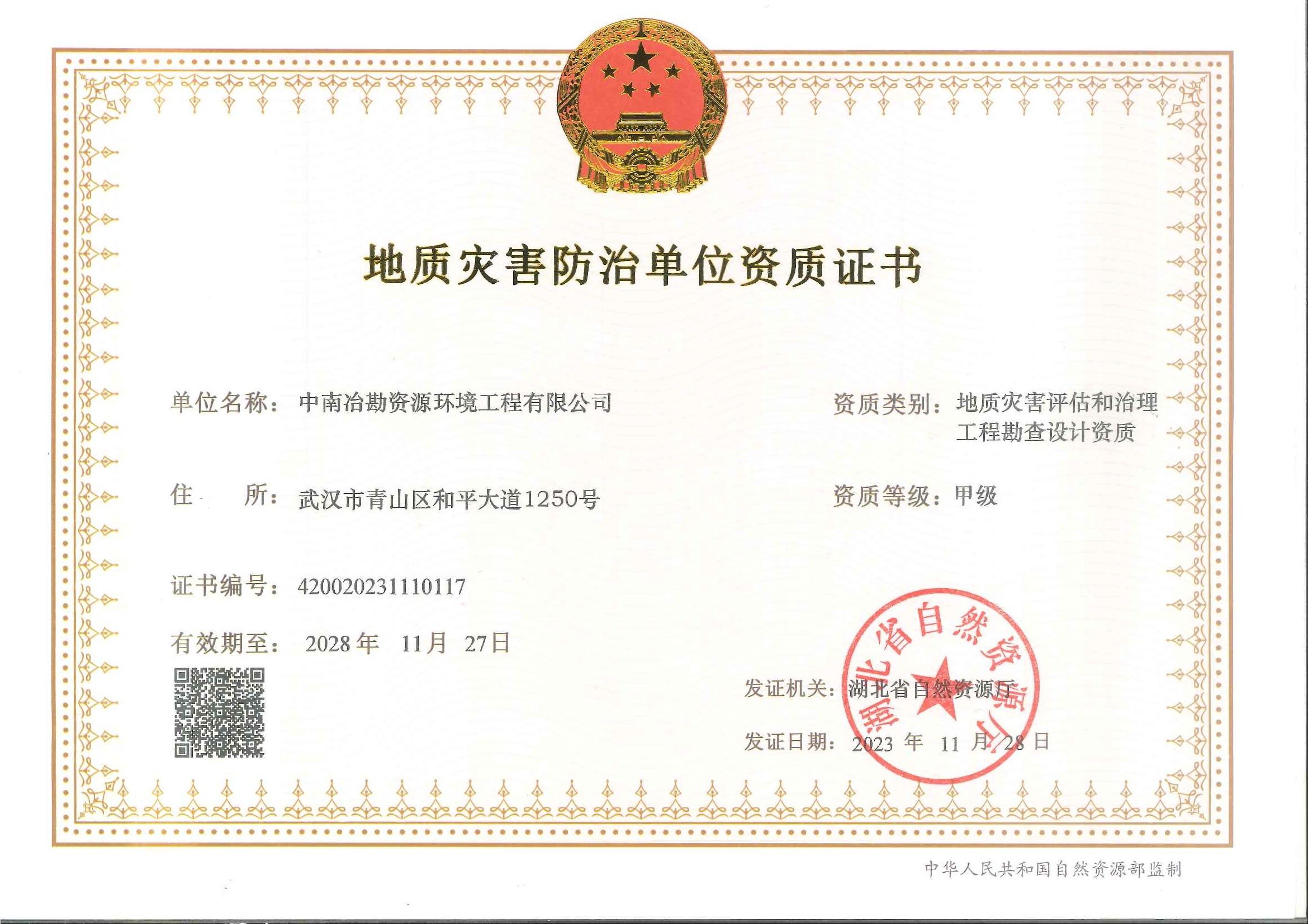 地质灾害评估和治理工程勘查设计资质 甲级