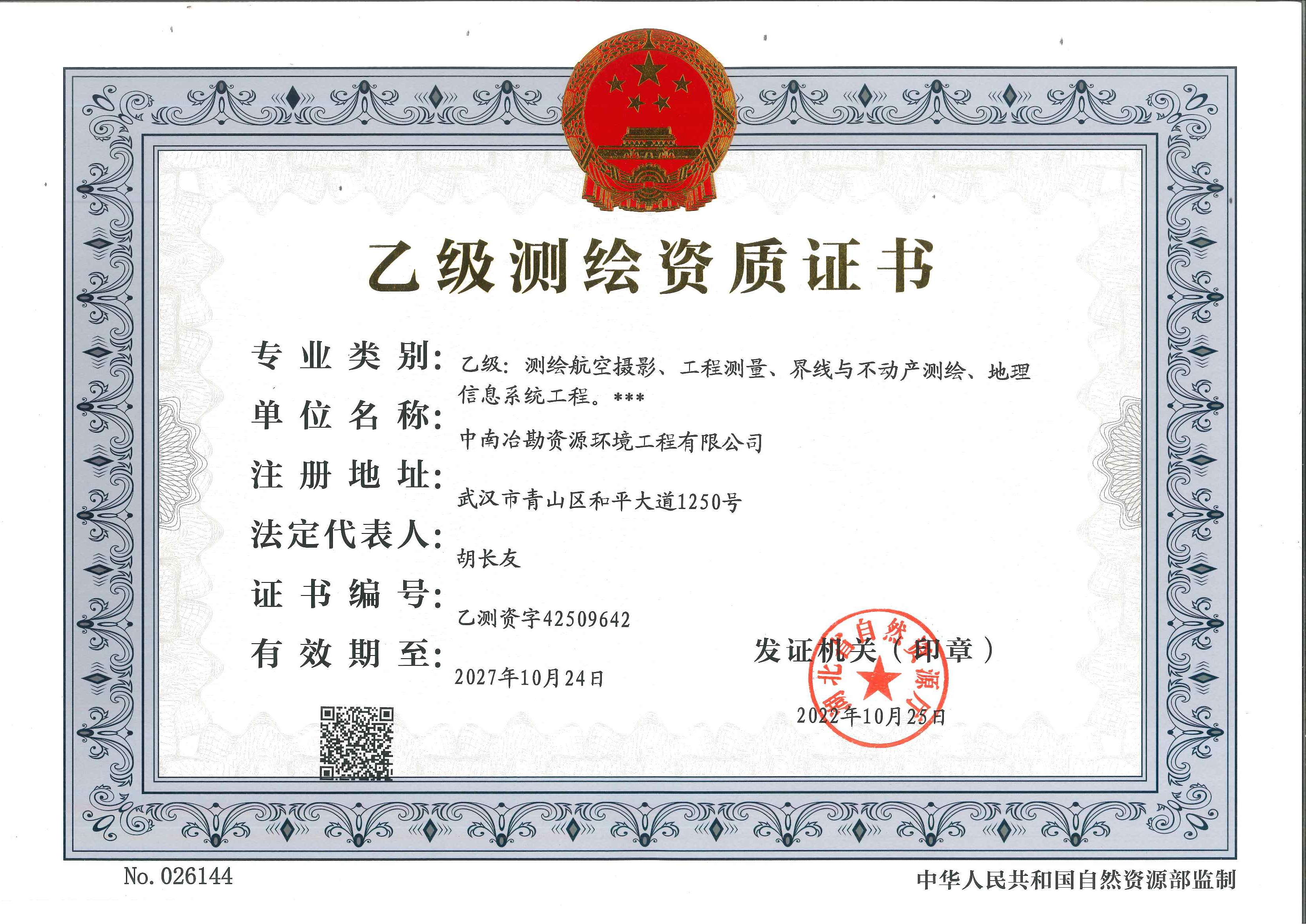乙级测绘资质证书