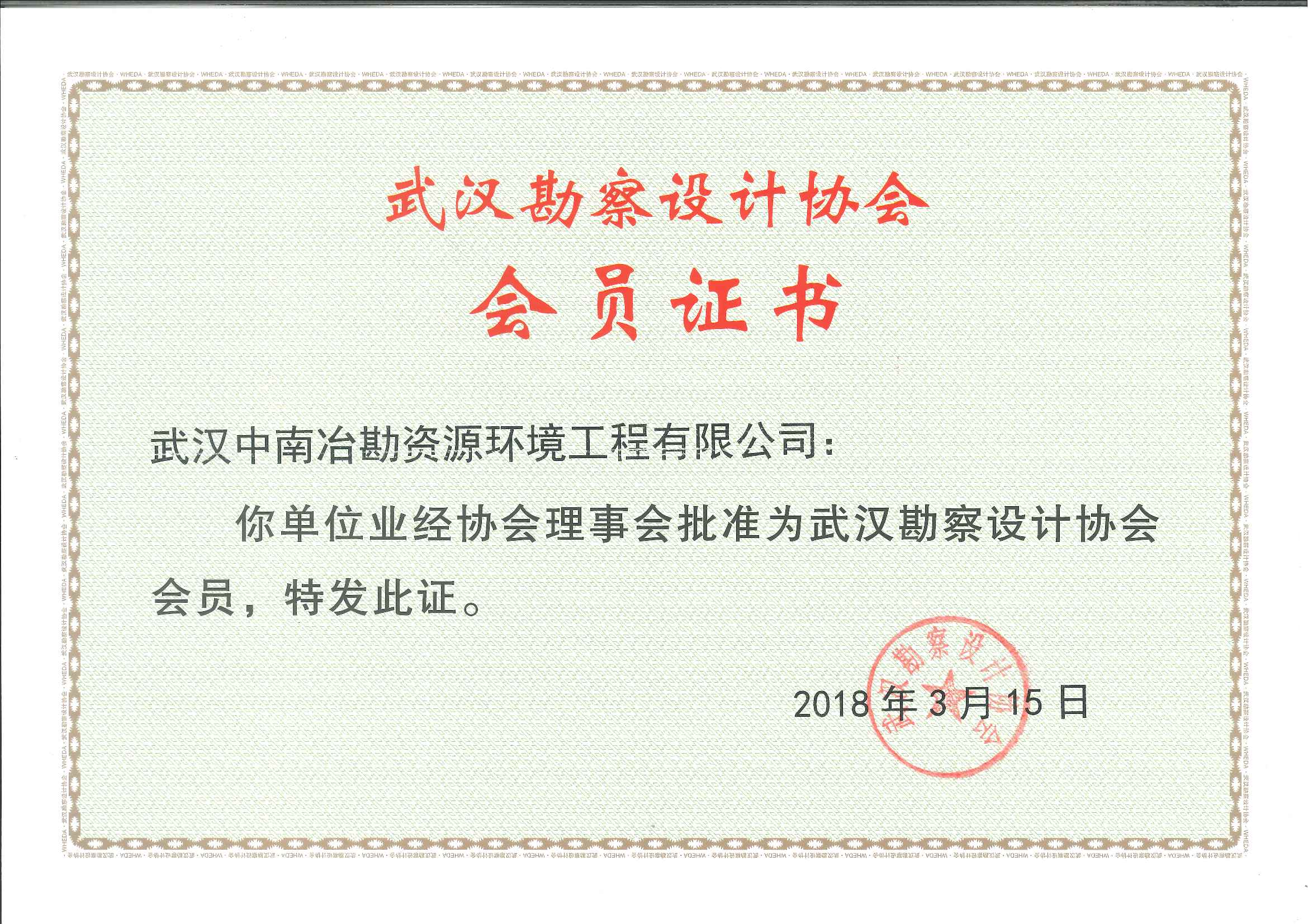武汉勘察设计协会会员证书