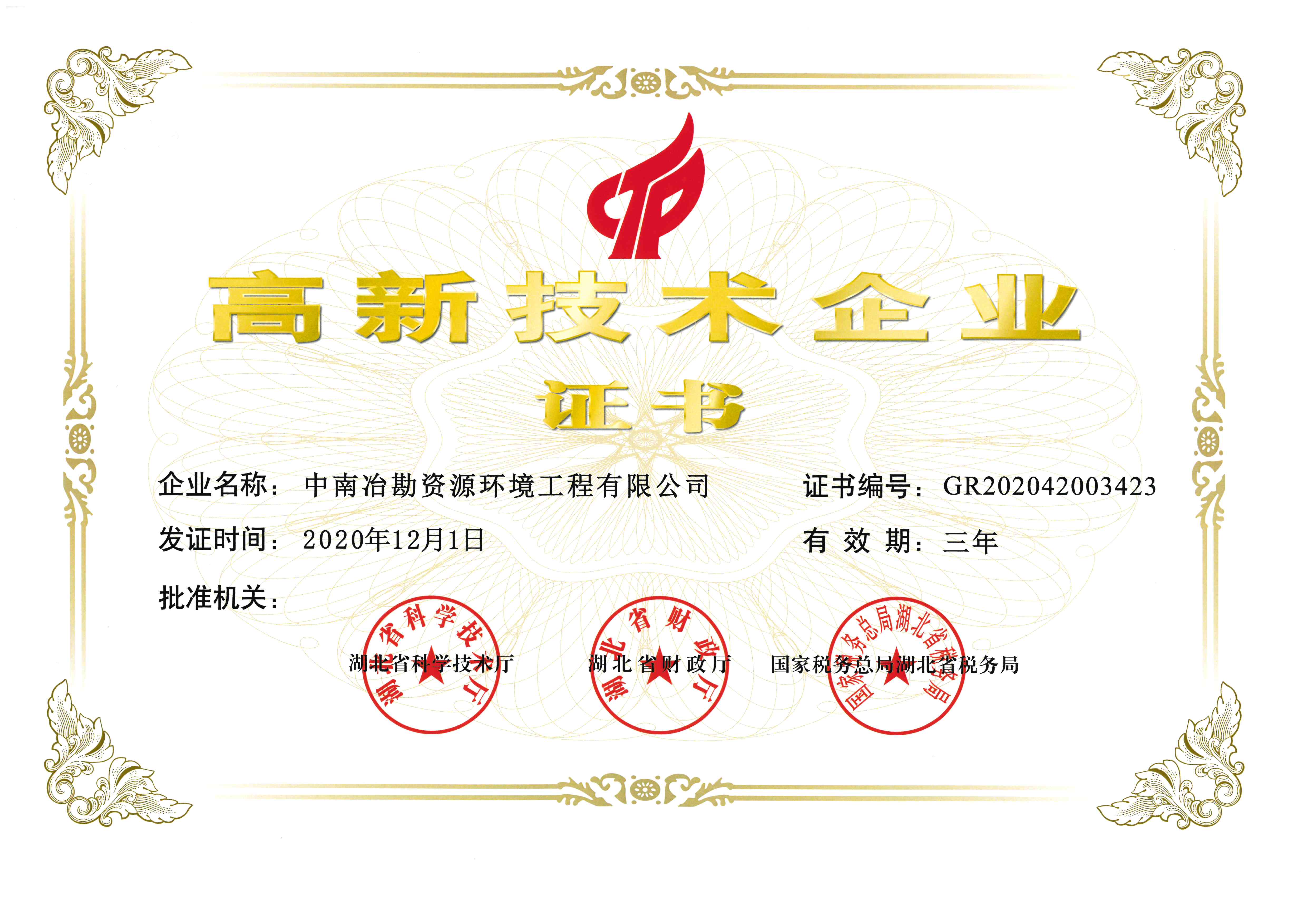 高新技术企业证书