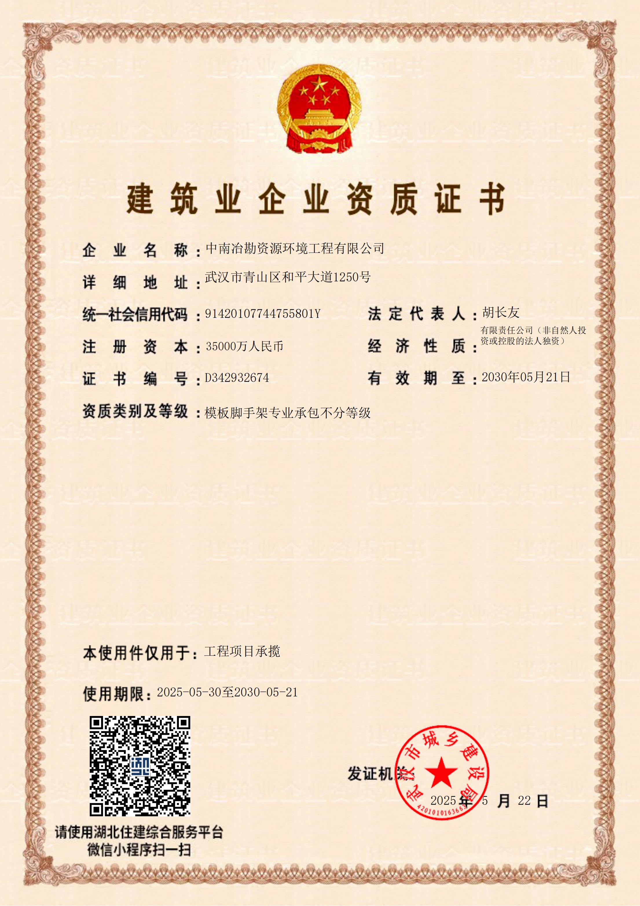 市政公用工程施工总承包贰级 地基基础工程专业承包壹级 防水防腐保温工程专业承包贰级 环保工程专业承包贰级